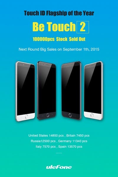 Ulefone se nám včera pochlubil, že k datu 17.8. mají prodáno 100.000 kusů Ulefone Be Touch 2. Ulefone Be Touch 2, jak již víme, je 5,5-palcový smartphone se 64-bitovým MTK6752, FHD displejem a čtečkou otisků prstů vržený na trh asi před 2 měsíci.
