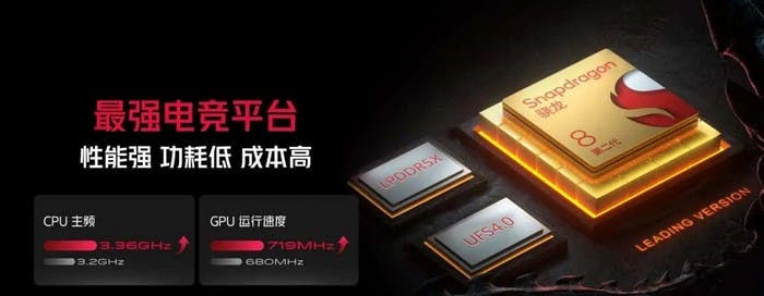 Jak již bylo řečeno herní stroje Red Magic 8S Pro pohání procesor Snapdragon 8+ Gen2, který je také přezdívaný Advanced Edition. Jde o rychlejší verzi běžného čipsetu Snapdragon 8 Gen2, která má primární jádro přetaktované z 3,2 GHz na 3,36 GHz a zvýšil se i takt GPU z 680 GHz na 719 GHz. Přetaktování přineslo o 5 % vyšší výkon na CPU a o 5,7 % na GPU. K čipsetu výrobce přidal 8/12/16/24 GB operační paměti a 128/256/512 GB a 1 TB interního úložiště.