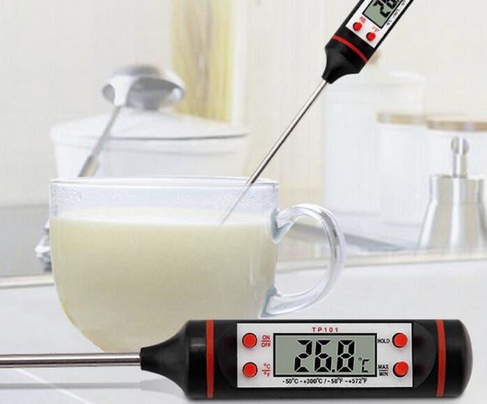 Milovníci steaků a jiných pečených mas jistě potvrdí, že správná vnitřní teplota masa rozhoduje o jeho výsledné chuti. A pro sledování teploty masa se výborně hodí kuchyňský teploměr. Na trhu jich najdeme spoustu a dokonce i takové, které se hodí i pro měření teploty nápojů, jako je káva nebo čaj. Tyto teploměry se designem příliš neliší od těch, kterými měříme teplotu masa. Na delší teplotní nerezové sondě je uložený malý displej, který zobrazuje aktuální teplotu nápoje. Teploměr funguje od -50°C až do +300°C a můžeme jej také ponořit přímo do hrnku s kávou nebo čajem. Cena ve slevové akci na Aliexpress začíná na 1,88 dolaru.