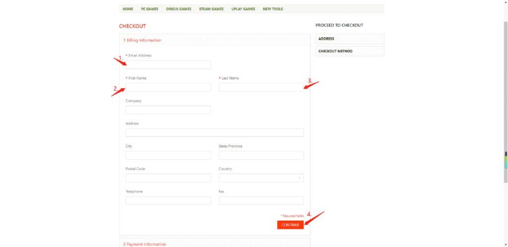 Krok 3: Po kliknutí na „CHECKOUT“ (POKRAČOVAT) se dostanete na následující rozhraní, kde vyplňte první tři pole pro registraci a klikněte na „CONTINUE“ (POKRAČOVAT).