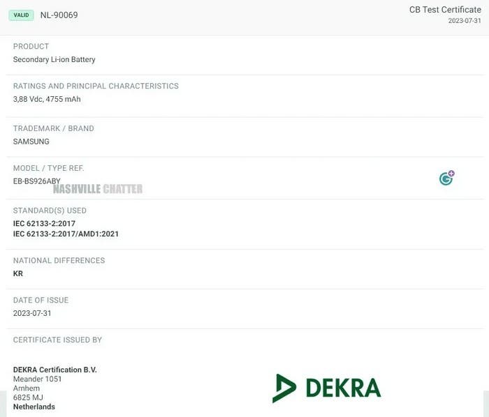 Kromě testů na platformě Geekbench získal telefon Samsung Galaxy S24 Plus také certifikaci TÜV, a to společně s modelem Galaxy S24 Ultra. Certifikace u obou telefonů potvrdila kapacitu jejich baterií. Galaxy S24 Plus má akumulátor s označením EB-BS926ABY a kapacitou 4755 mAh. Model Ultra má pak baterii s modelovým označením EB-BS926ABY a kapacitou 4855 mAh.