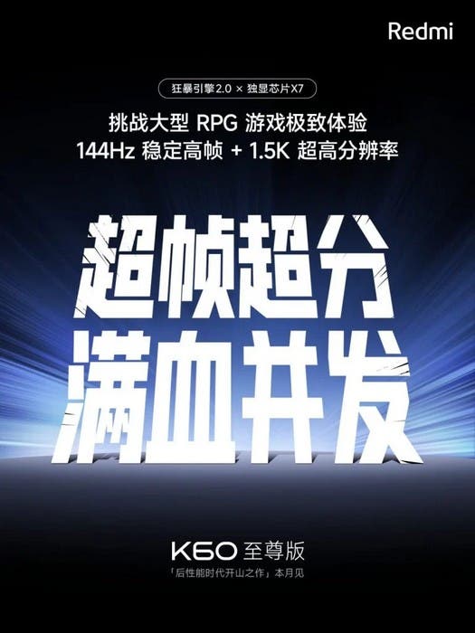 Telefon K60 Ultra má také potvrzený nezávislý zobrazovací čip PixelWorks X7 pro lepší vizuály a výborný herní zážitek. Dále zde najdeme integrovaný Furious Engine 2.0, který plně využívá potenciál procesoru Dimensity 9200+ pro posílení výkonu jak CPU tak GPU. OLED displej má rozlišení 1,5K a obnovovací frekvenci 144 Hz. Snímkovací frekvence narostla na 143,4 snímků za sekundu. Výrobce sice nepotvrdil žádné další specifikace chystaného telefonu, ale z toho mála, co zveřejnil, půjde o telefon s výkonem, který jistě ocení hráči mobilních her.
