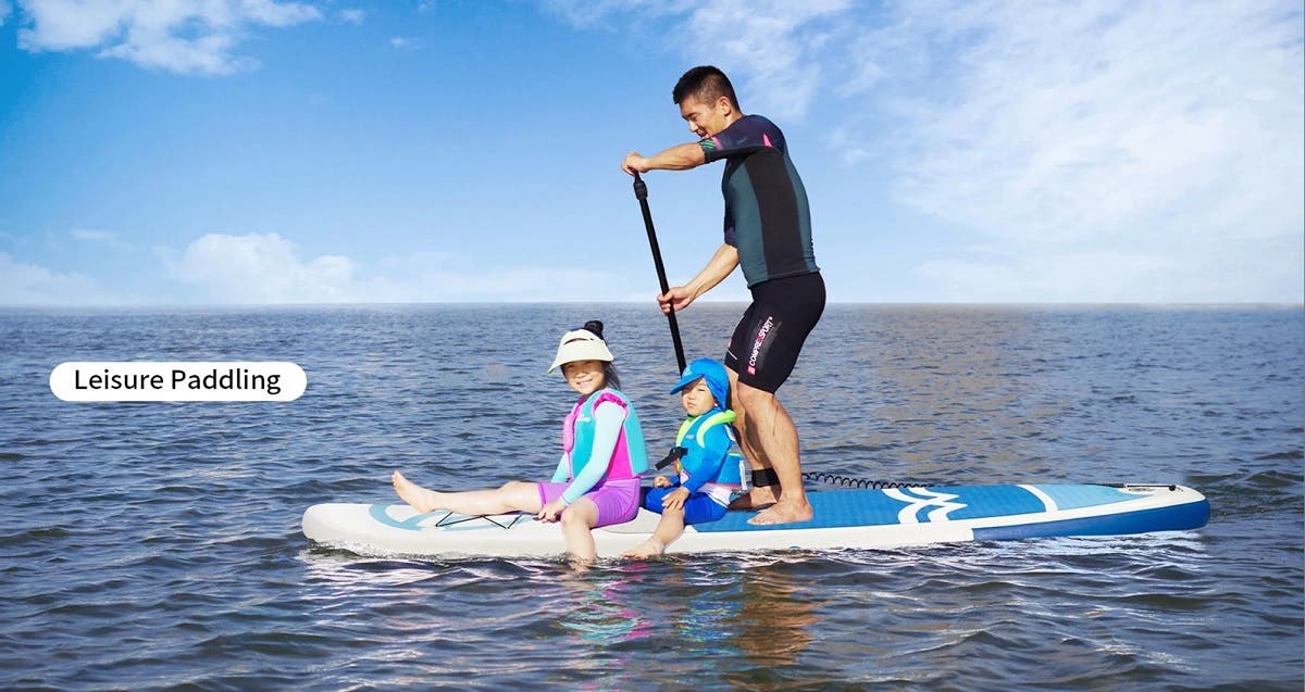 A nejedná se o jen tak nějaký paddleboard. Tento kousek od značky WKERSIY je totiž v balení s kompletním příslušenstvím, takže stačí jen vyjet na vodu. Vyfouknutý vám nezabere moc místa v přiloženém vaku, ale po nafouknutí jde o pořádného „macka“ s 320 cm délky a 83 cm šířky. Navíc s nosností až 150 kilogramů živé váhy. Povrch paddleboardu je z velké části protiskluzový a trojice podvodních plováků pomáhá s držením rovnováhy a manévrováním. Odolný PVC materiál by toho také měl poměrně hodně vydržet a nemusíte se tak bát nějakého toho náhodného škrábance.