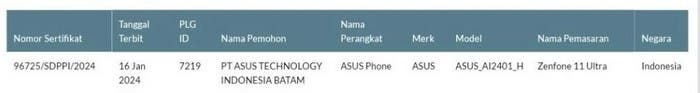 Asus Zenfone 11 Ultra má indonéskou certifikaci SDPPI