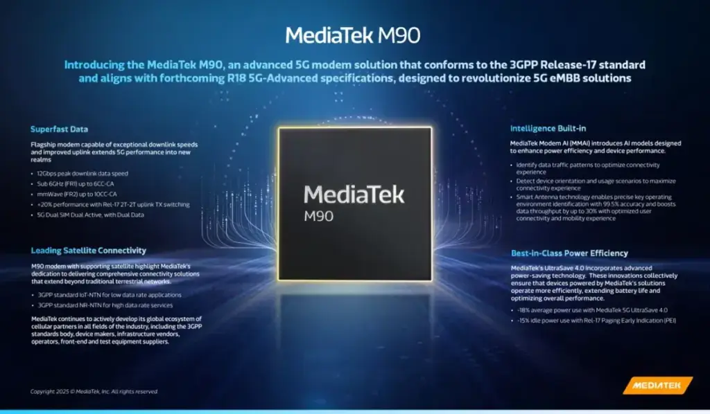 Únik informací, který sdílel tipař Mystic Leaks na Telegramu, tvrdí, že příští čip Google, Tensor G6, již není závislý na hardwaru Samsung. Místo toho společnost použije modem M90 od MediaTek, který přišel oznámen na začátku tohoto roku. V současné době používá Tensor G5 v řadě Pixel 10 modem Exynos 5400 od Samsungu. Nová alternativa M90 slibuje maximální rychlost stahování až 12 Gbps. Zvýší se také energetická účinnost a nový modem nabízí vestavěnou podporu pro duální 5G SIM karty a satelitní připojení.
